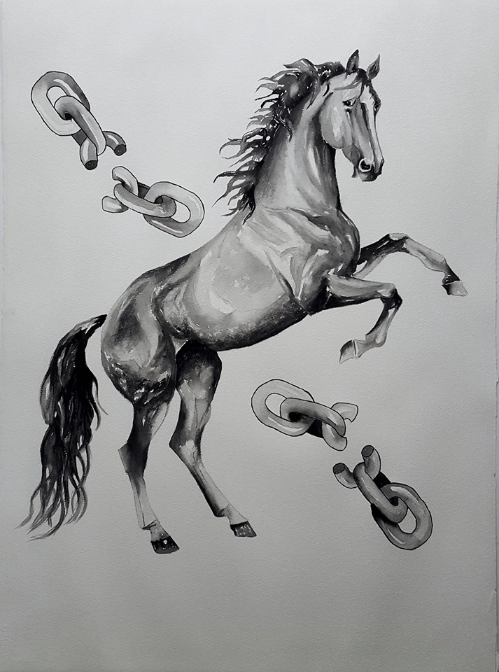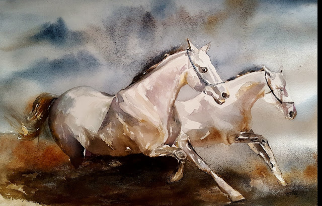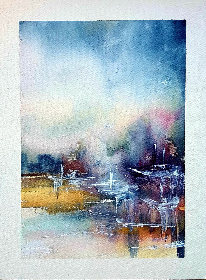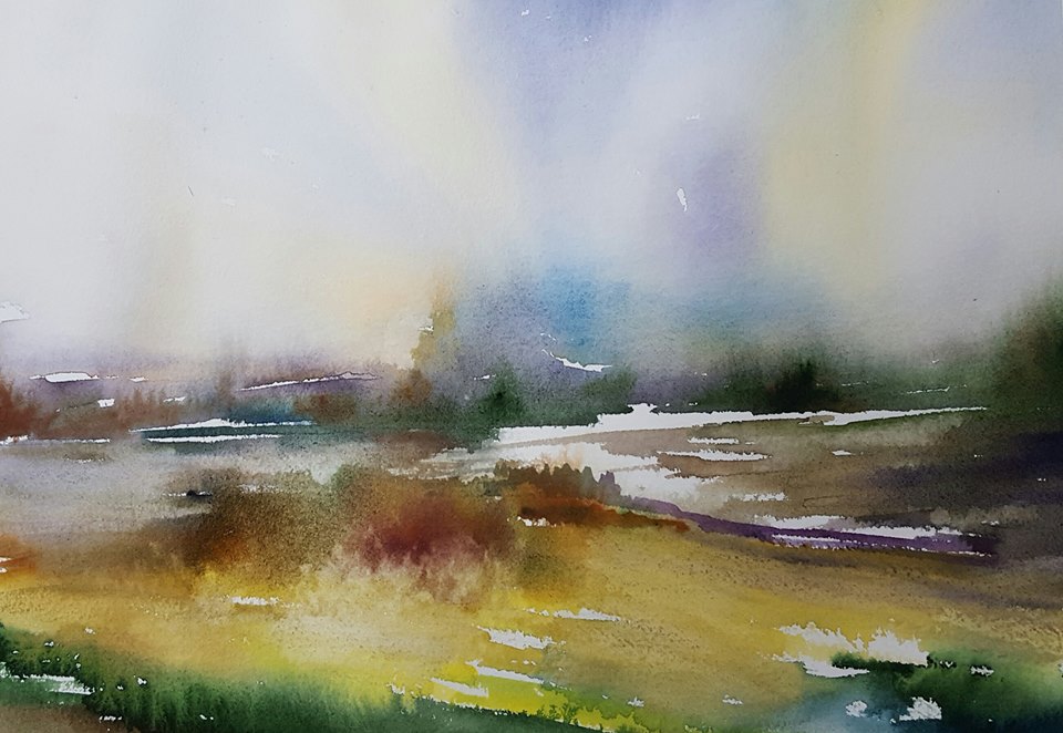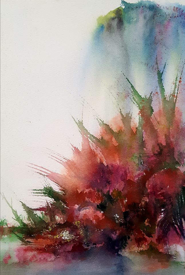 de agua y color que produce la técnica de la acuarela traspasa al ejecutor y al observador más allá de la locura de una liberación compartida".